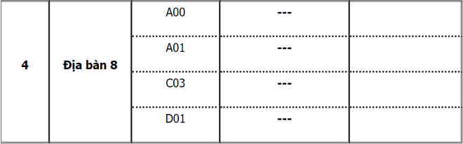 Địa bàn 8 gồm các đơn vị trực thuộc Bộ Công an - A09, C01, C10, C11, K01, K02.