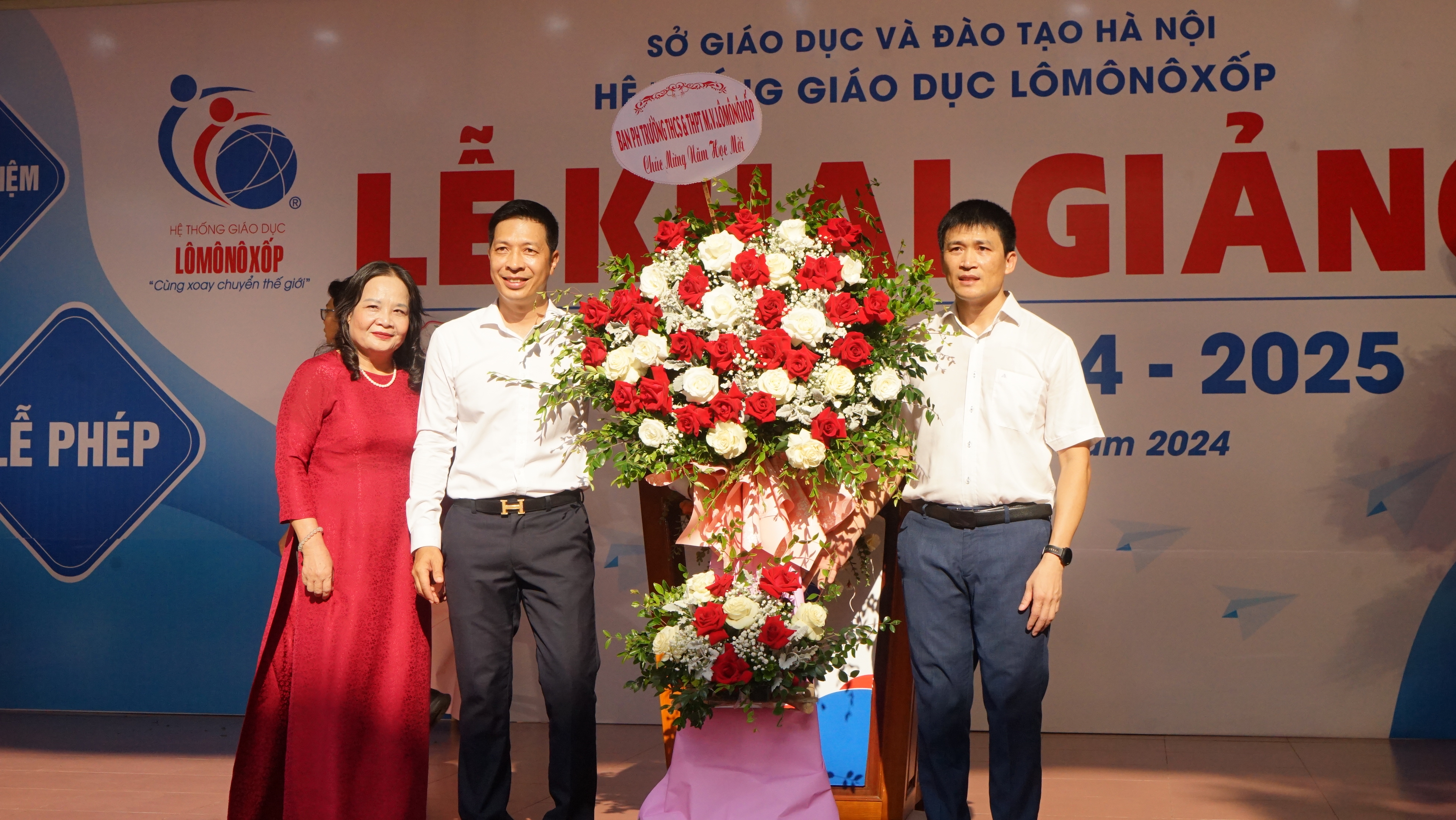 Tham dự buổi lễ có ông Nguyễn Quốc Hội, Chủ tịch Hội đồng Trường, Chủ tịch HĐQT Hệ thống giáo dục Lômônôxốp; ông Nguyễn Văn Châu Phó Chủ tịch HĐQT Hệ thống giáo dục Lômônôxốp; nhà giáo Nguyễn Quang Tùng - Hiệu trưởng Nhà trường; ông Đoàn Ngọc Long - trưởng ban đại diện Hội cha mẹ học sinh; cùng toàn thể các thầy giáo cô giáo và các em học sinh toàn trường.
