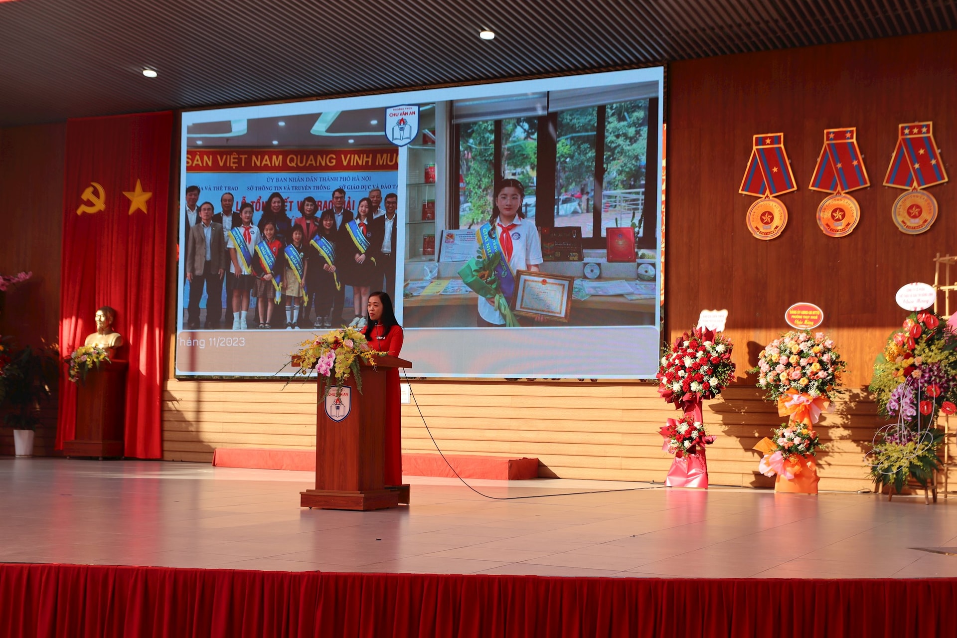 Sáng ngày 20/11, Trường THCS Chu Văn An (quận Tây Hồ) long trọng tổ chức Lễ kỷ niệm 70 năm thành lập ngành Giáo dục và Đào tạo Thủ đô (1954-2024), 42 năm Ngày Nhà giáo Việt Nam (20/11/1982 - 20/11/2024) và đón nhận Cờ thi đua của Chính phủ.