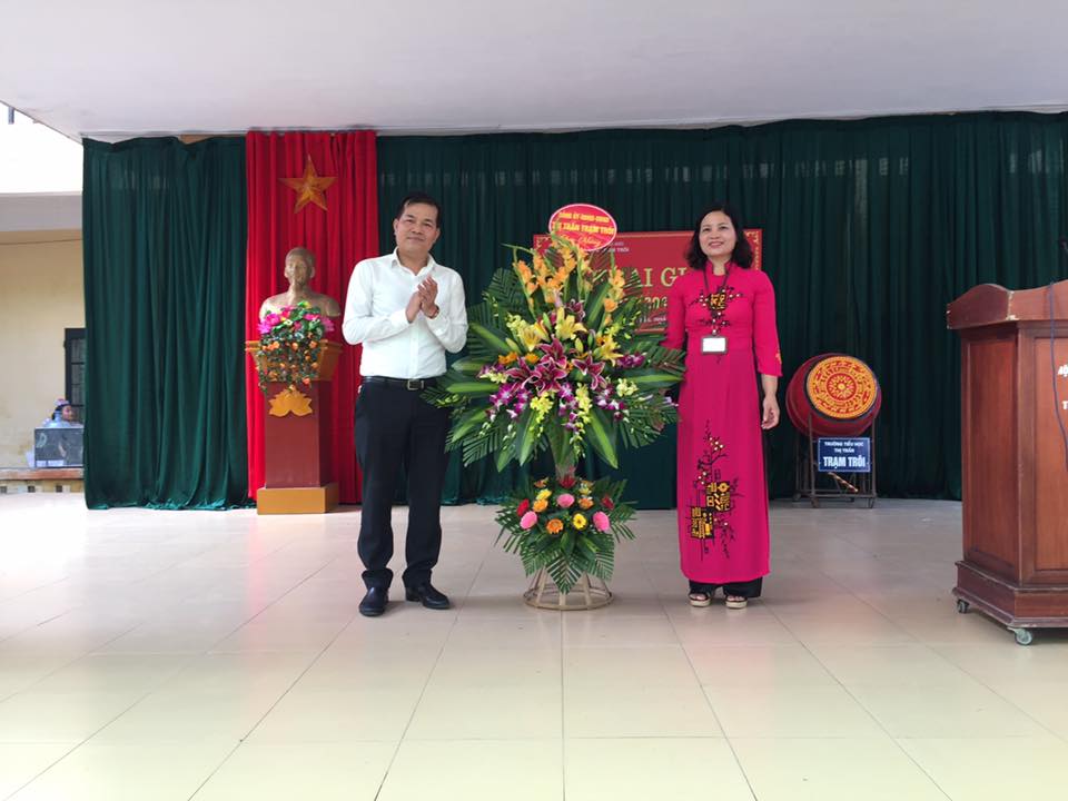 | Đại diện đoàn đại biểu có lẵng hoa chúc thầy cô giáo trong lễ khai giảng năm học 2018 - 2019 |