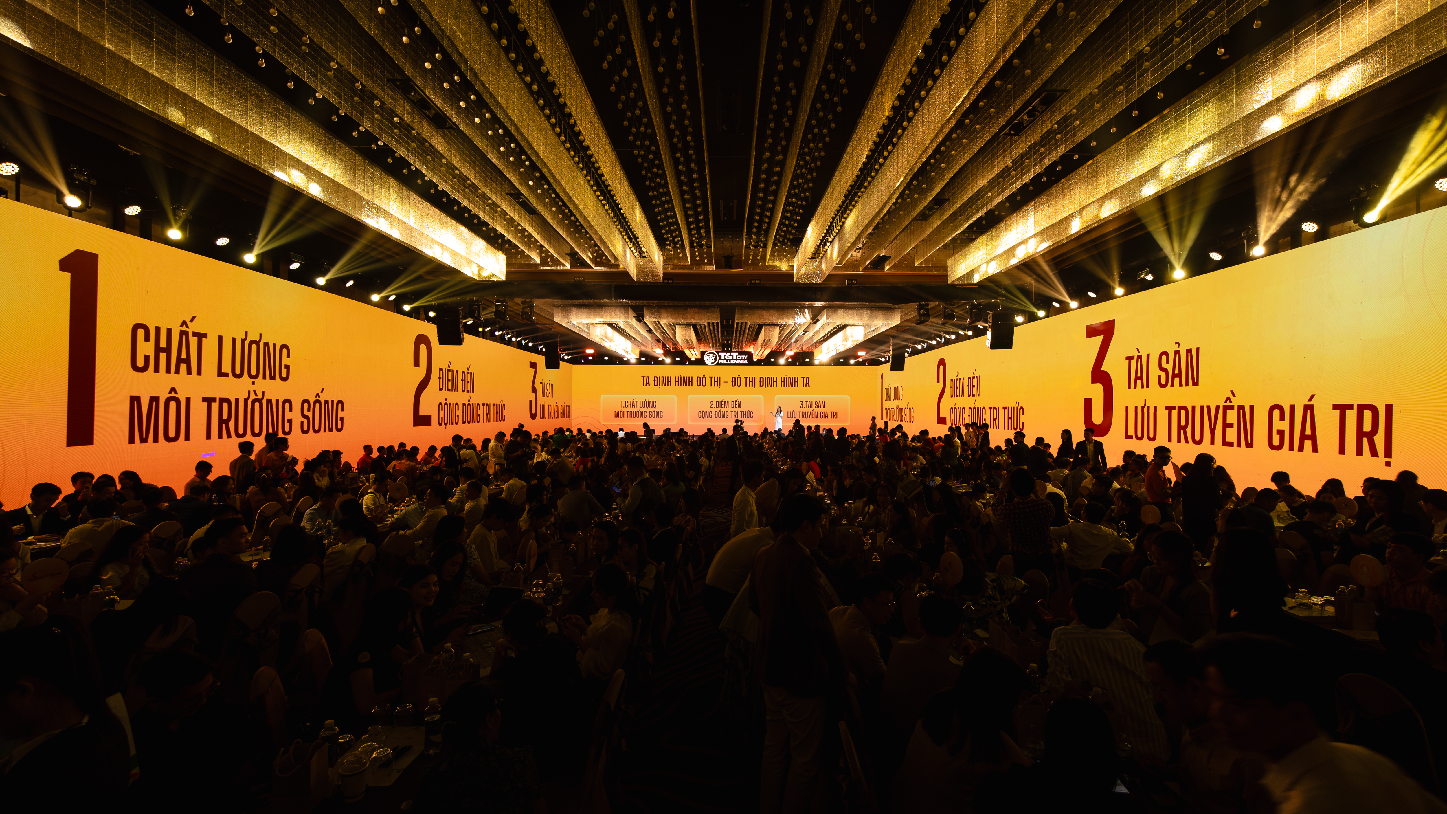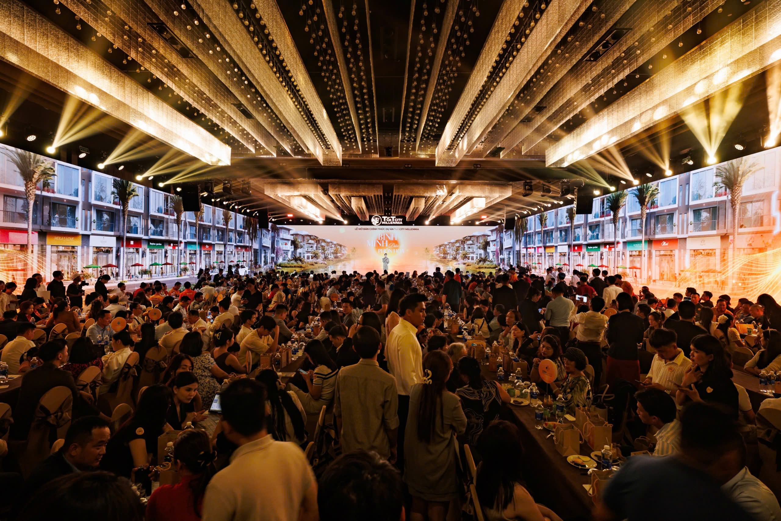 Hệ thống màn hình LED panorama dài gần 100 m bao quanh khán phòng mang đến trải nghiệm thị giác sống động, đưa khách mời “chạm” vào hình ảnh đại đô thị tương lai. Trong không gian ấy, chương trình nghệ thuật được dàn dựng công phu cùng phần trình diễn giàu cảm xúc của ca sĩ Văn Mai Hương, hòa quyện với hiệu ứng ánh sáng và âm nhạc hiện đại, đã kể nên hành trình kiến tạo một “Thành phố Thiên Niên kỷ” giữa lòng miền sông nước, mang đến bầu không khí bùng nổ và tràn đầy kỳ vọng.