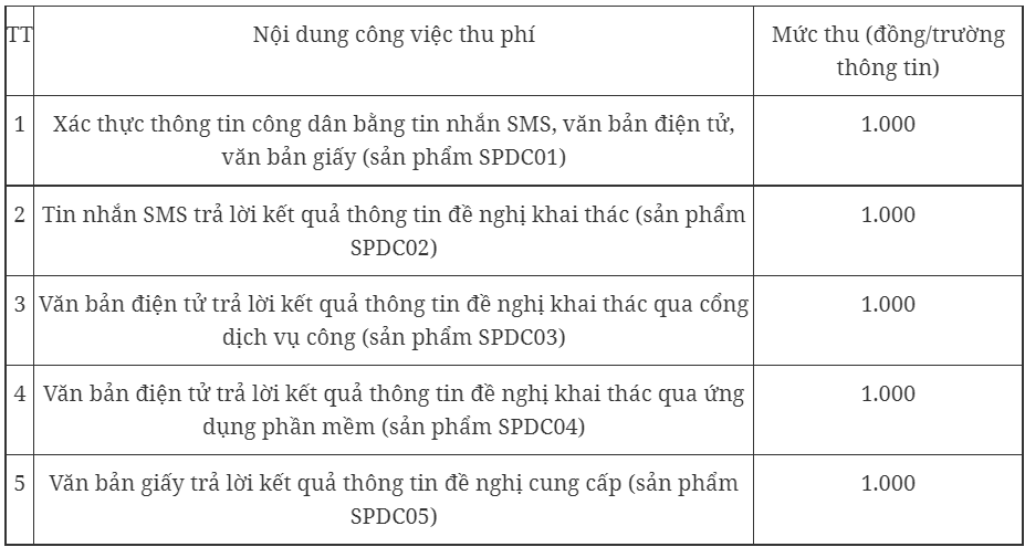 Thông tư quy định mức phí xác thực thông tin công dân, khai thác kết quả thông tin như sau: