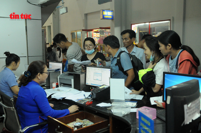 Hành khách đến mua vé tàu tại ga Sài Gòn.