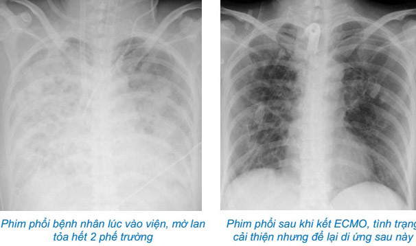 Bệnh nhân sau đó không đáp ứng với điều trị hồi sức, phải tiến hành can thiệp ECMO cấp cứu. Trong quá trình 37 ngày chạy ECMO, gần 50 ngày thở máy với oxy liều cao, do suy giảm khả năng đề kháng, bệnh nhân rất dễ nhạy cảm với các vi sinh vật trong bệnh viện và phải điều trị nhiều đợt kháng sinh, kháng nấm. Các bác sĩ đã phải nhiều lần hội chẩn trong khoa và liên khoa để kịp thời đưa ra phác đồ điều trị thích hợp cho từng diễn biến của bệnh.