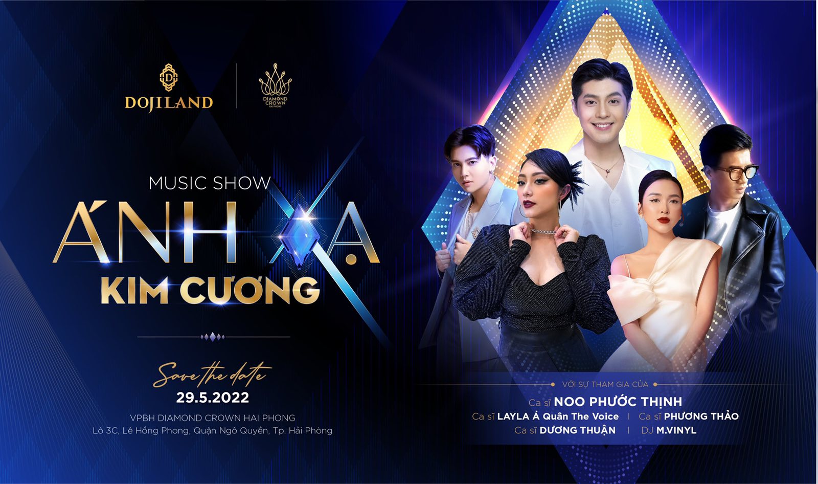 Không đơn thuần là hoạt động giới thiệu sản phẩm, căn hộ mẫu là hiện diện chân thực của chuẩn sống hạng sang từ tương lai, khi những giá trị nghệ thuật cộng hưởng cùng công nghệ hiện đại. Đây cũng là dịp hiếm hoi tại Hải Phòng, một sự kiện bất động sản được tổ chức công phu dưới hình thức tuần lễ văn hóa nghệ thuật. Các Quý quan khách sẽ được tham gia các hoạt động thưởng lãm âm nhạc, triển lãm ảnh Hải Phòng xưa & nay và tiệc trà phong cách Châu Âu. Điểm nhấn của tuần lễ là Music Show Ánh xạ Kim cương diễn ra từ 18h00 đến 21h00 ngày 29/05/2022. Chương trình có sự tham gia của ca sĩ Noo Phước Thịnh, ca sĩ Layla, Á Quân The Voice, ca sĩ Phương Thảo 2019, Ca sĩ Dương Thuận và DJ M.VINYL.
