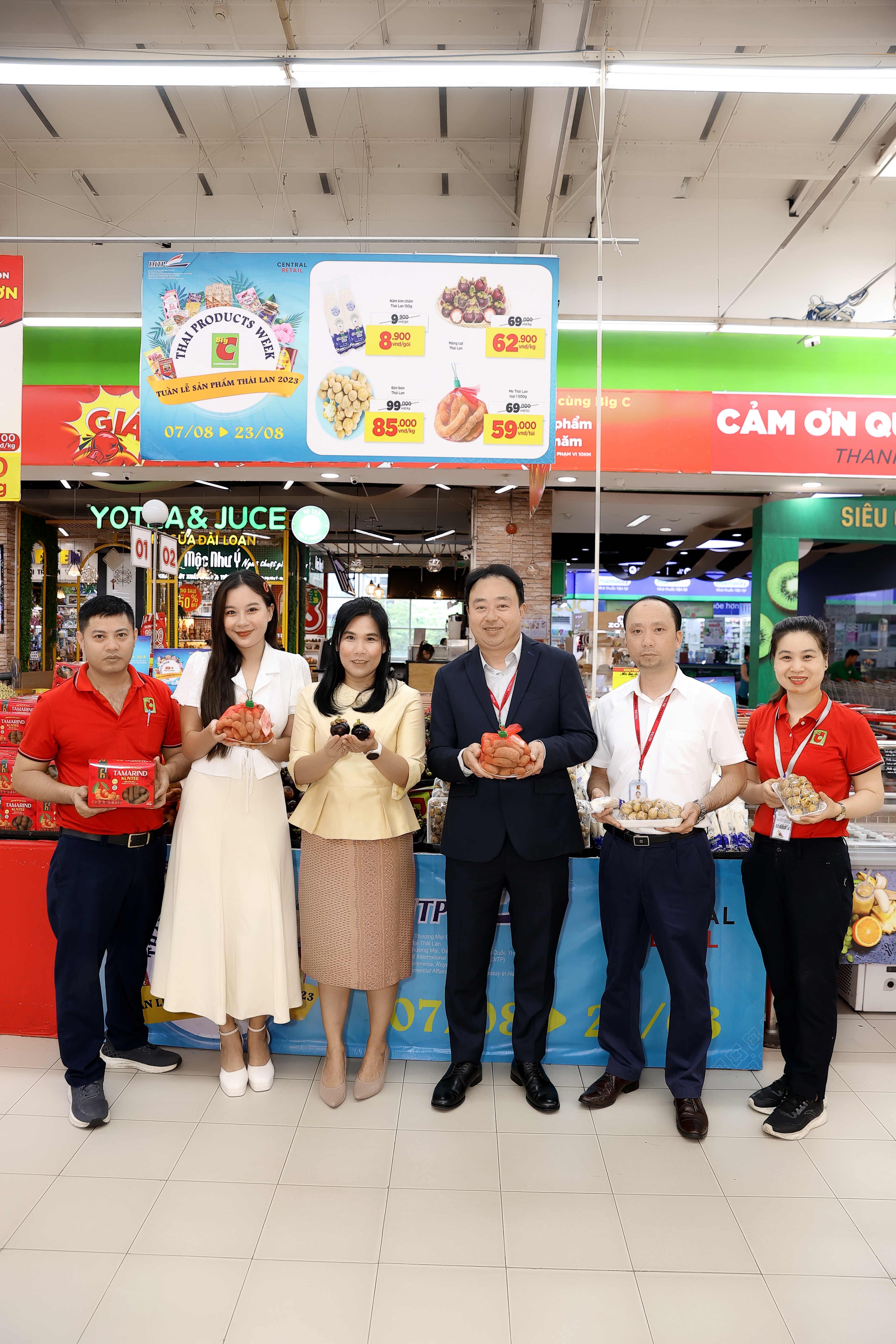 Ngày 07/08/2023, sự kiện khởi động TUẦN LỄ SẢN PHẨM THÁI LAN 2023 TẠI CÁC SIÊU THỊ GO/BIG C và TOPS MARKET đã được diễn ra với sự hiện diện của Bà Taneeya Foocharoen – Tham tán Thương mại, Đại sứ quán Vương Quốc Thái Lan tại Hà Nội và Ông Chalermchai Pornsiriyakool – Giám Đốc Đối Ngoại Quốc Tế, Central Retail Việt Nam tại BIG C Thăng Long, 222 Trần Duy Hưng, Phường Trung Hòa, Quận Cầu Giấy, Hà Nội.
