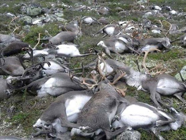 Ba nhà nghiên cứu từ Viện Địa cực Na Uy cho biết thảm họa "quy mô lớn chưa từng có" này là do biến đổi khí hậu loài tuần lộc vào tình trạng thiếu thức ăn nghiêm trọng.