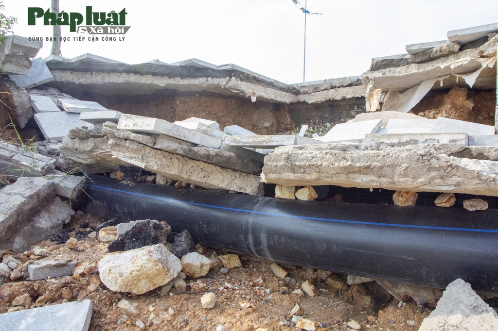 Từng mảng bê tông lớn đè cả vào đường ống dẫn nước sạch |