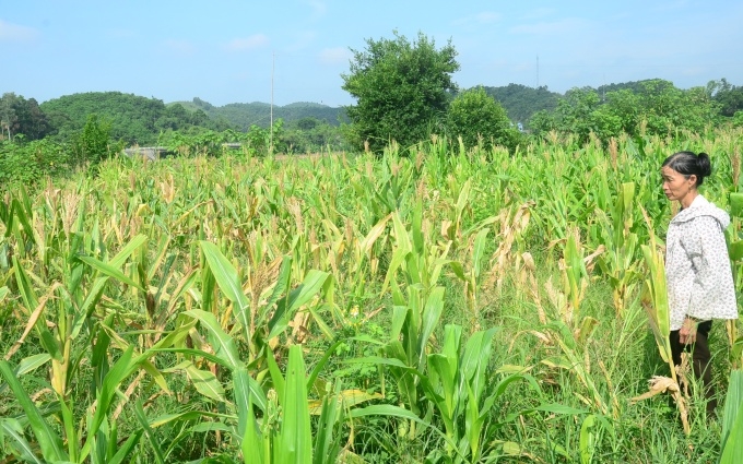 Diện tích ngô của gia đình bà Đặng Thị Đông, xóm 5, xã Tân Long (Yên Sơn) không được thu hoạch do sâu keo mùa thu gây ra. Ảnh Hải Chung |
