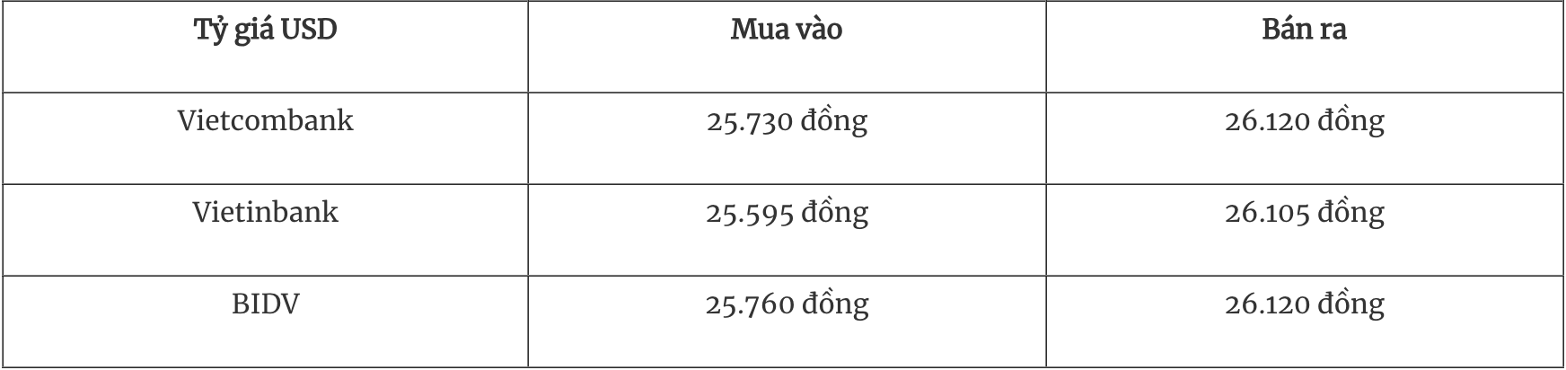Tỷ giá USD tại một số ngân hàng thương mại mua vào và bán ra như sau: