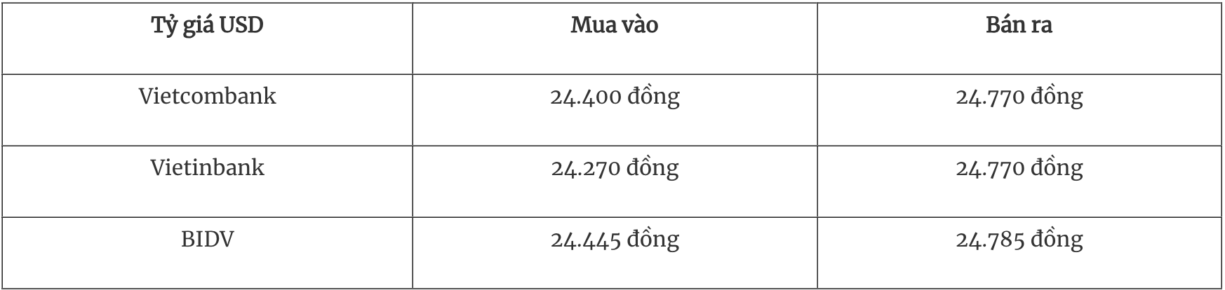Tỷ giá USD tại các ngân hàng thương mại mua vào và bán ra như sau: