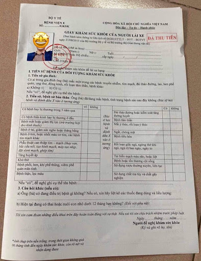 Dưới đây là mẫu giấy khám sức khỏe chúng tôi được người bán cung cấp với đầy đủ con dấu mang tên các bệnh viện lớn, tuy nhiên phần thông tin của người khám hoàn toàn bỏ trống, để người mua tự điền.
