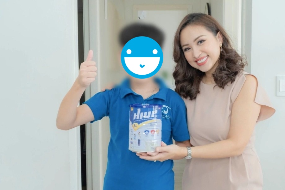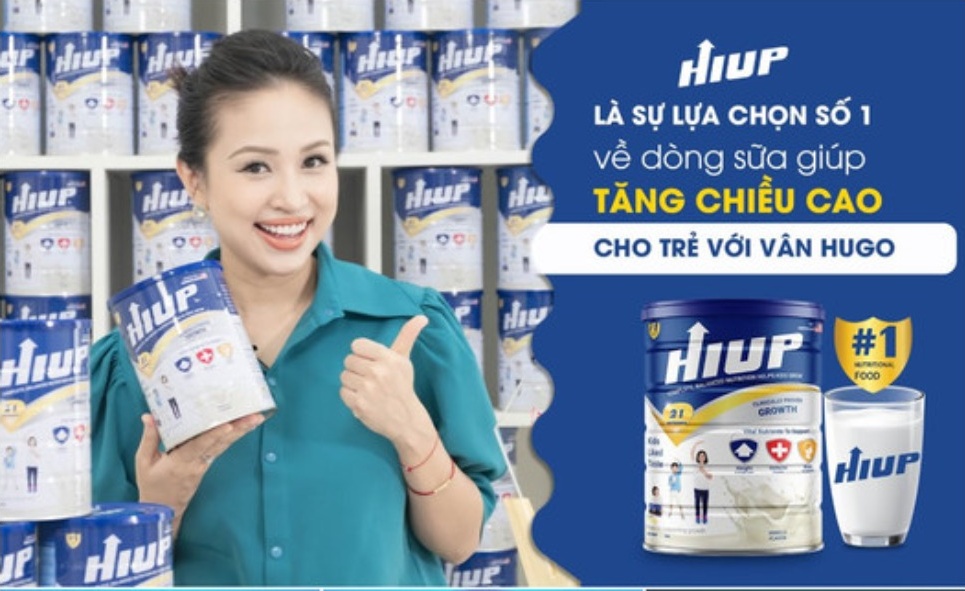 Trước khi xảy ra ồn ào sữa giả, Vân Hugo là một trong những người nổi tiếng tích cực quảng cáo cho loại sữa Hiup này.