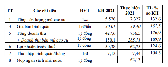 Theo Báo cáo kết quả sản xuất kinh doanh măm 2021, Cao su Đắk Lắk cho biết đại dịch Covid -19 đã ảnh hưởng rất lớn đến hoạt động sản xuất kinh doanh sản phẩm mủ cao su, các sản phẩm trái cây và hoạt động dịch vụ Khách sạn Dakruco của Công ty. Tuy nhiên, các chỉ tiêu chính ĐHĐCĐ giao về sản lượng, doanh thu, lợi nhuận, thu nhập người lao động, bảo toàn vốn đều đạt và vượt kế hoạch.