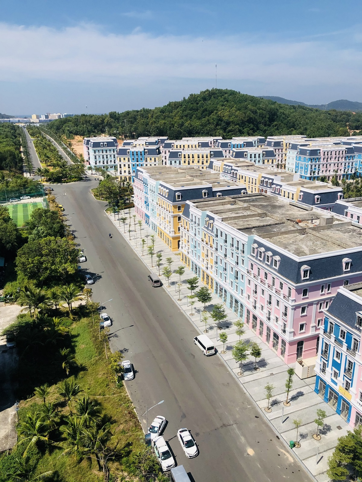Từ đại lộ dẫn vào tổ hợp Bãi Kem, những dãy shophouse Melodia sắc màu bắt đầu vận hành kinh doanh nhộn nhịp. Những khối block shophouse Melodia cao 5 tầng rực rỡ đem đến một diện mạo mới căng tràn sức sống, bừng sáng tổ hợp Bãi Kem.