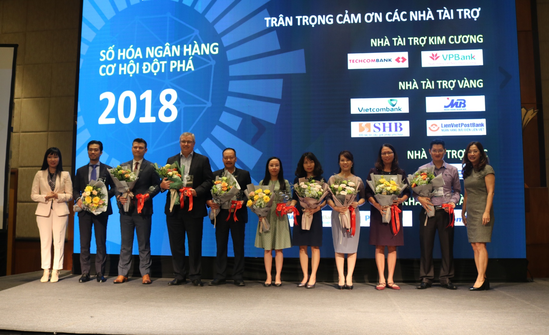 Thanh Sơn – Phó Tổng Giám đốc LienVietPostBank (đứng thứ 6 từ phải sang) lên nhận