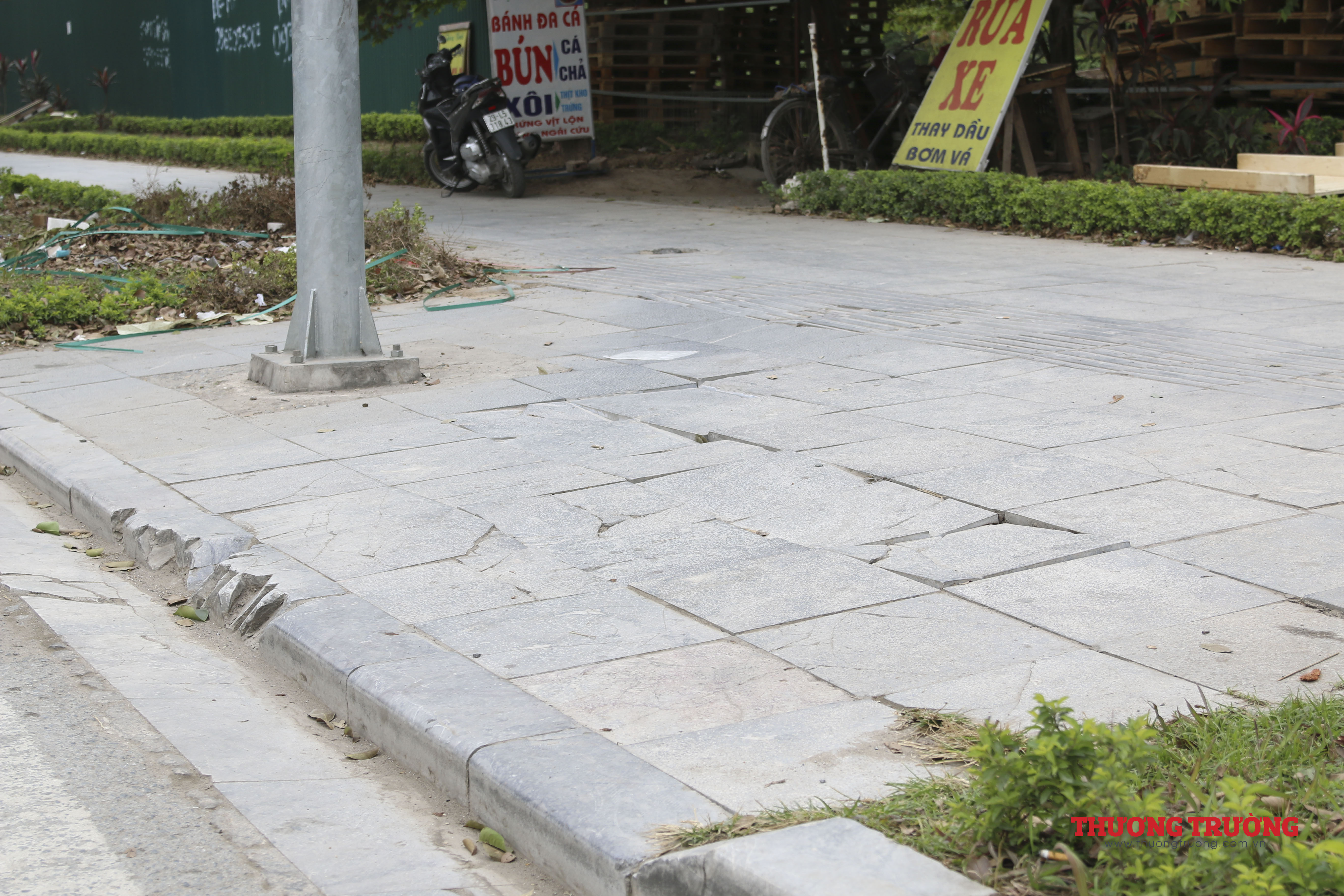 Tuyến đường Trịnh Văn Bô (quận Nam Từ Liêm, Tp.Hà Nội) được đầu tư đồng bộ về lát đá vỉa hè, vườn hoa, tiểu cảnh. Nhưng sau một thời gian, nhiều chỗ bị vỡ vụn, bong tróc, nhiều chỗ không còn hình dạng.