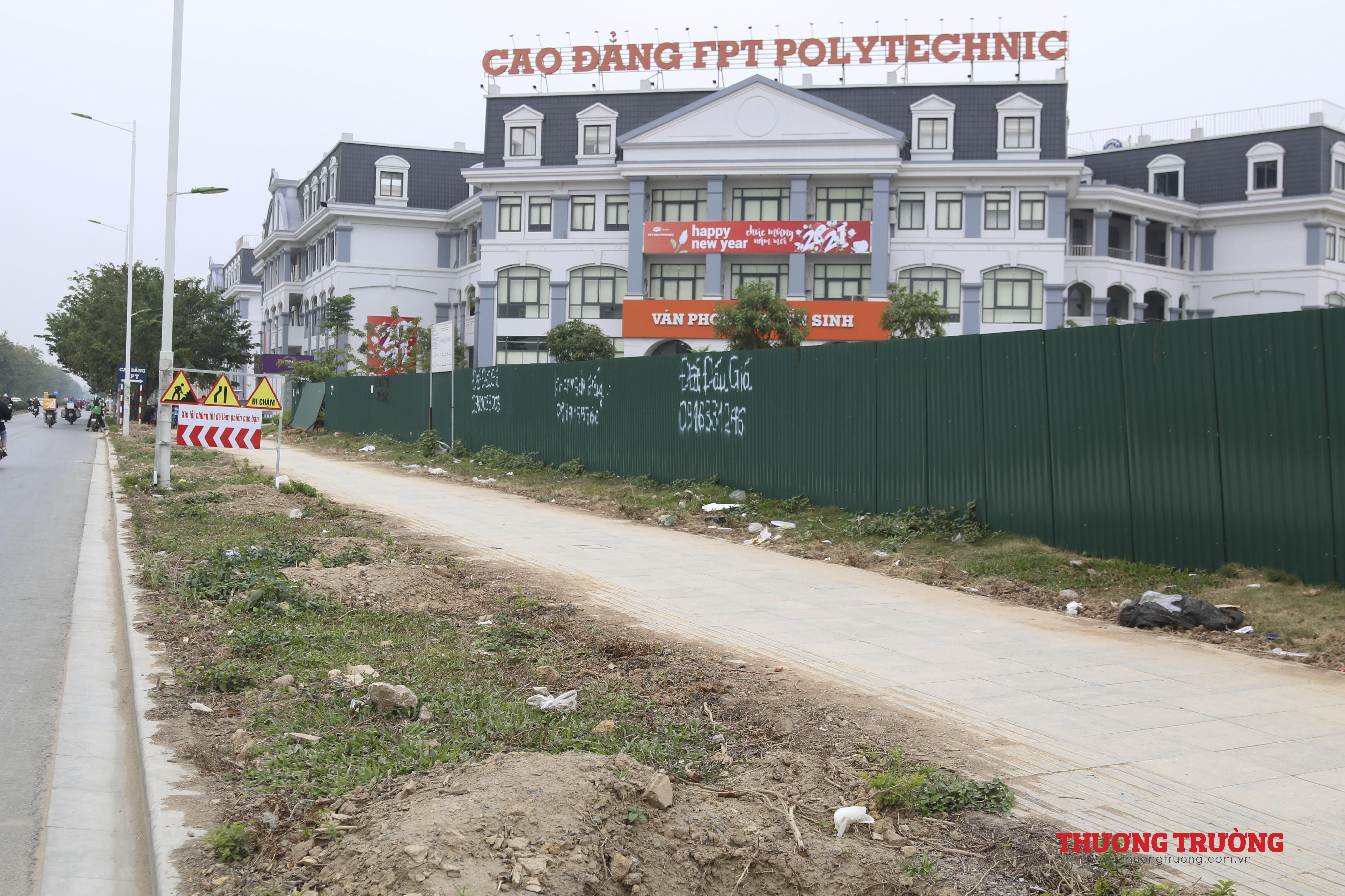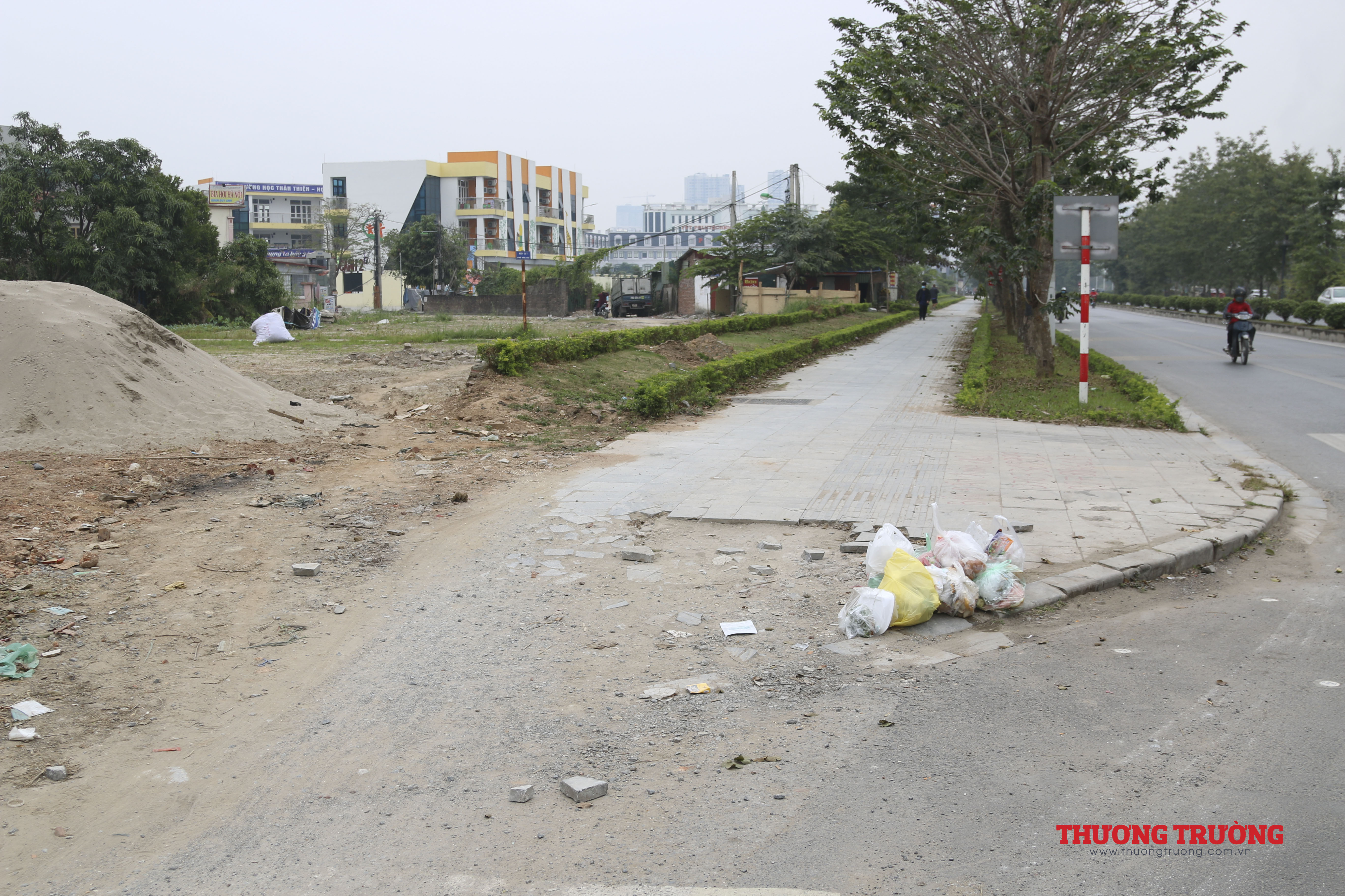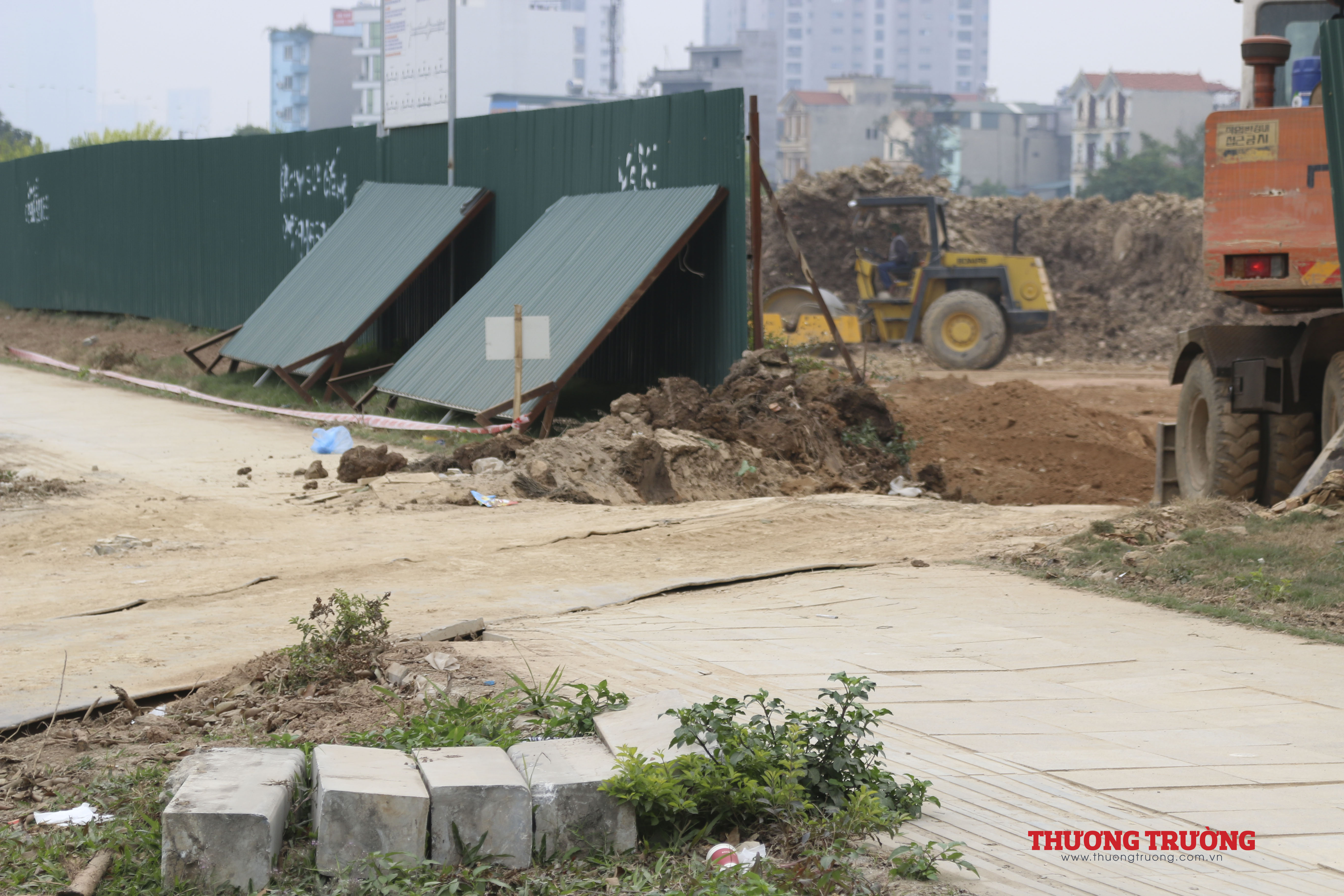 Ngay cạnh vỉa hè là công trường đi ngang qua vỉa hè gây hư hỏng nặng cho vỉa hè.