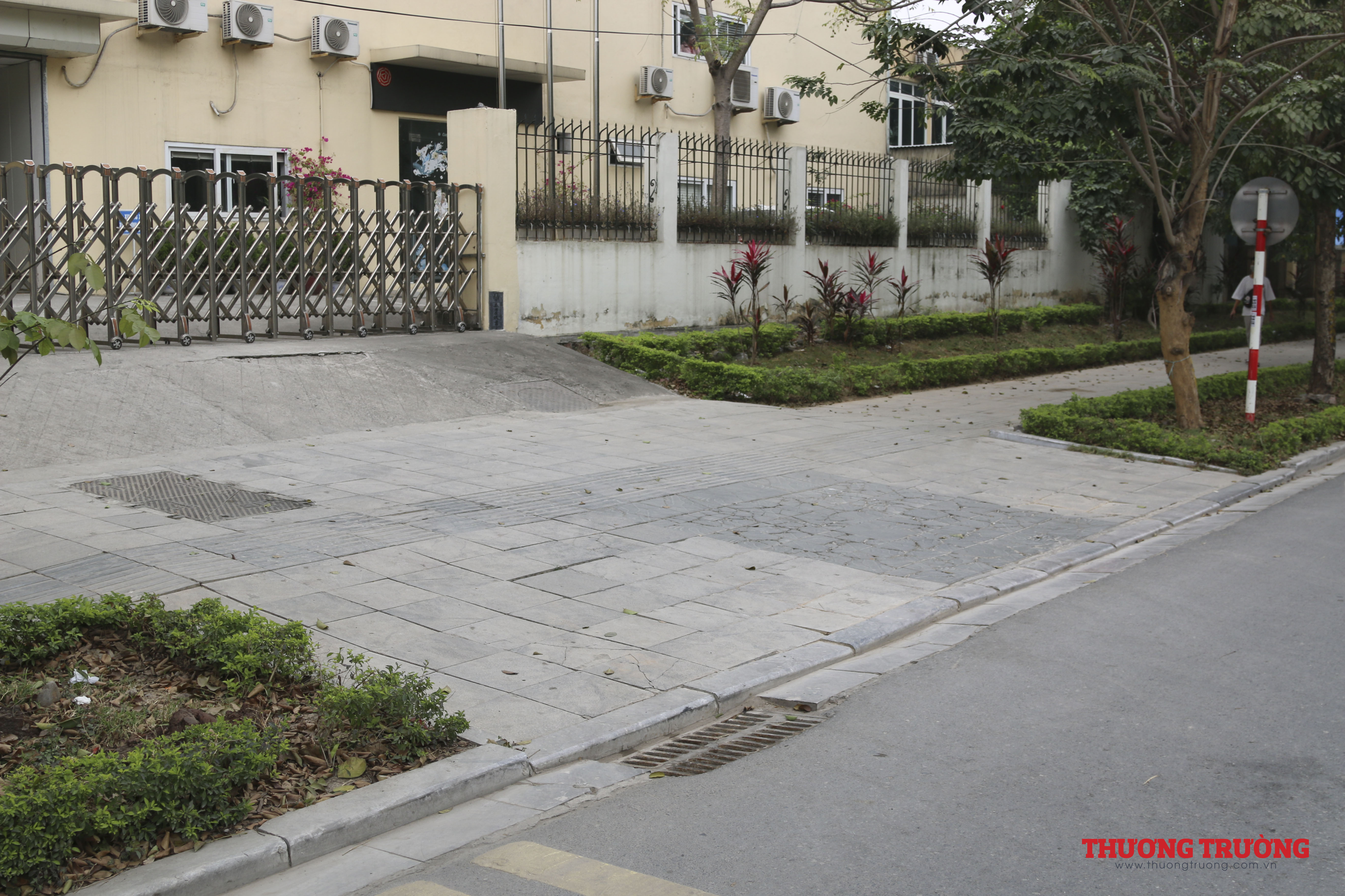 Một cổng ở công ty tình trạng đá vỉa hè bị nún, vỡ nứt rất nhiều.