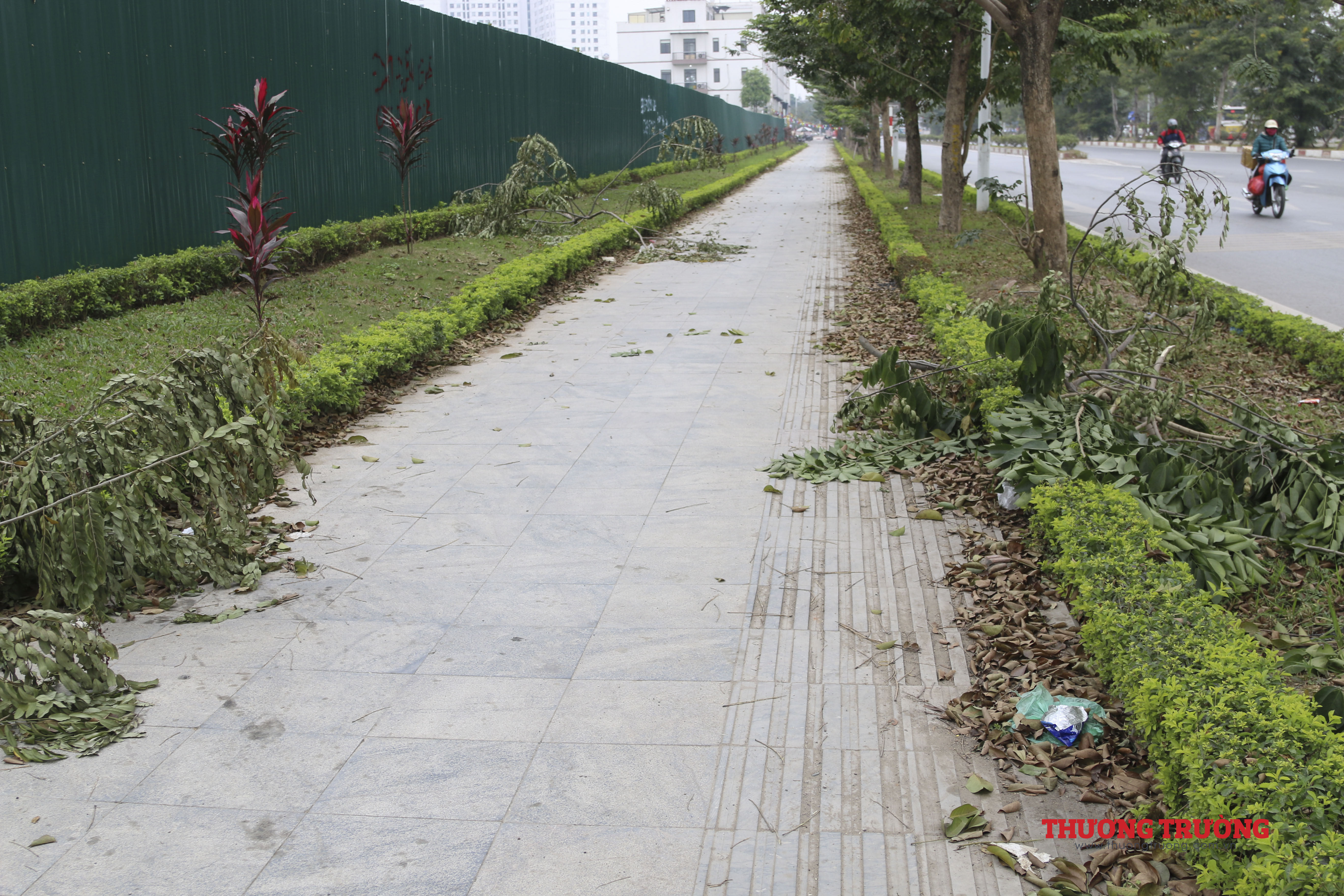Cành cây sau khi cắt tỉa, chặt hạ, lá khô không được thu gom mà nằm bừa bộn trên vỉa hè, ảnh hưởng môi trường, mấ mỹ quan đô thị.