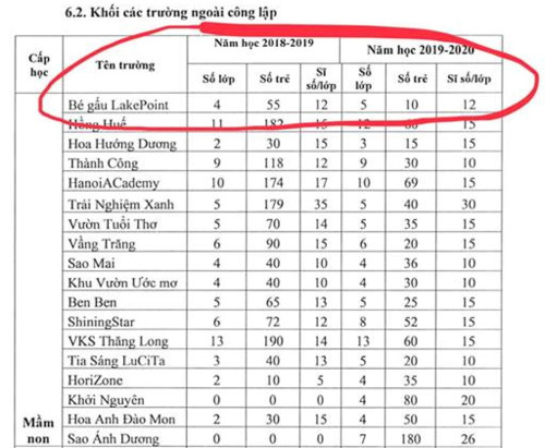 Đại diện nhà trường đã đưa ra bằng chứng cho thấy Kế hoạch tuyển sinh năm học mới 2019-2020 được ký duyệt bởi Phó Chủ tịch UBND Quận Tây Hồ Phạm Xuân Tài, trong đó có tên trường.