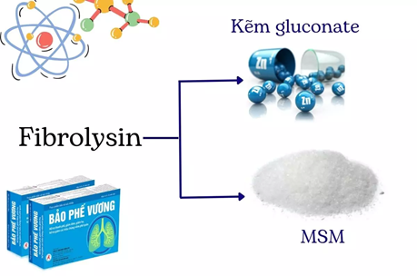Bảo Phế Vương có thành phần chính là Fibrolysin giúp cải thiện các triệu chứng ho, đờm, khó thở do viêm phế quản phổi gây ra. Đây là hợp chất kết hợp giữa methylsulfonylmethane (MSM) và muối kẽm gluconat. Hoạt chất này đã được các nghiên cứu gần đây tại Hoa Kỳ và các nước khác trên thế giới chứng minh mang lại tác dụng chống xơ hóa, chống tái cấu trúc đường thở, giúp làm giảm triệu chứng viêm phế quản phổi, tăng sức đề kháng, nâng cao sức khỏe của phổi.