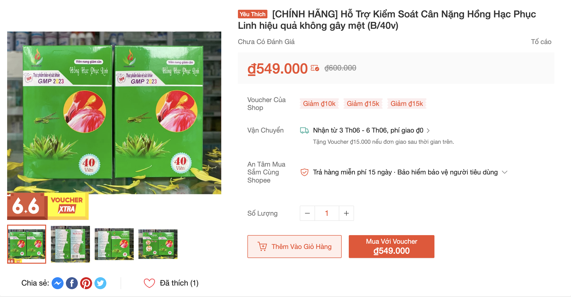Trên sàn TMĐT vẫn đăng bán loại sản phẩm Viên nang giảm cân Hồng Hạc Phục Linh. Giá bán sản phẩm này dao động từ 395.000 đến 560.000 đồng/hộp 40 viên - Ảnh chụp màn hình.