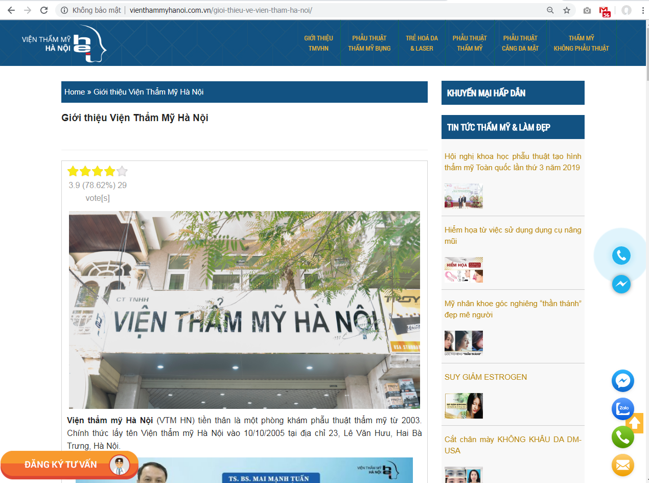 Tuy nhiên, theo ghi nhận của PV, đến thời điểm hiện tại việc quảng cáo vượt quá phạm vi hoạt động này vẫn ngang nhiên tồn tại ngay trên website của viện thẩm mỹ Hà Nội mà không hề có bất kỳ động thái tích cực nào.