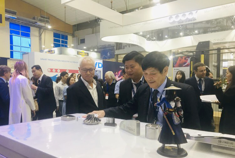 Đại diện lãnh đạo Hiệp hội cơ khí Việt Nam và Hội tự động hoá Việt Nam tham quan các gian hàng