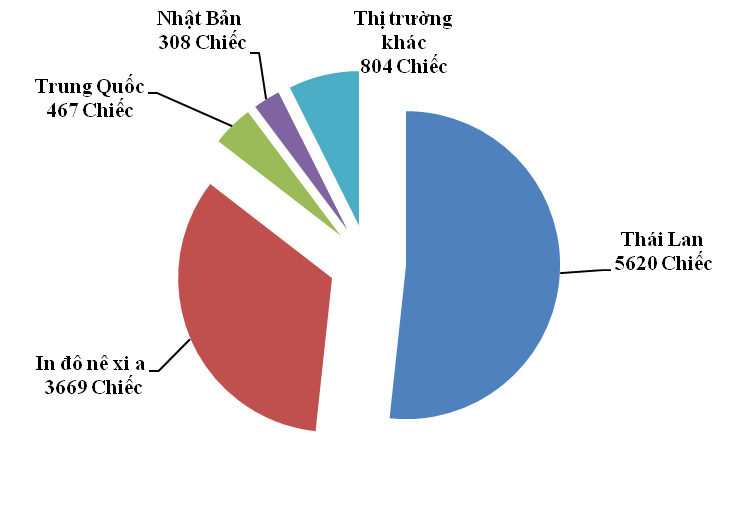 Trong đó, có tới 1.493 chiếc xe có xuất xứ từ Thái Lan, giảm mạnh tới 60,6% và chiếm tỷ trọng 94% trong tổng số xe loại này nhập khẩu về Việt Nam trong tháng.