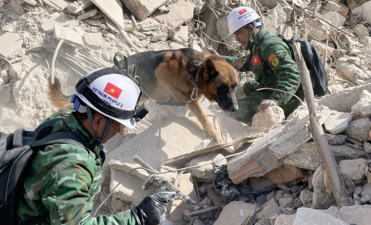 Đội cứu hộ, cứu nạn của Bộ Quốc phòng Việt Nam làm nhiệm vụ tại Hatay, Thổ Nhĩ Kỳ (Ảnh: Hiếu Phạm)