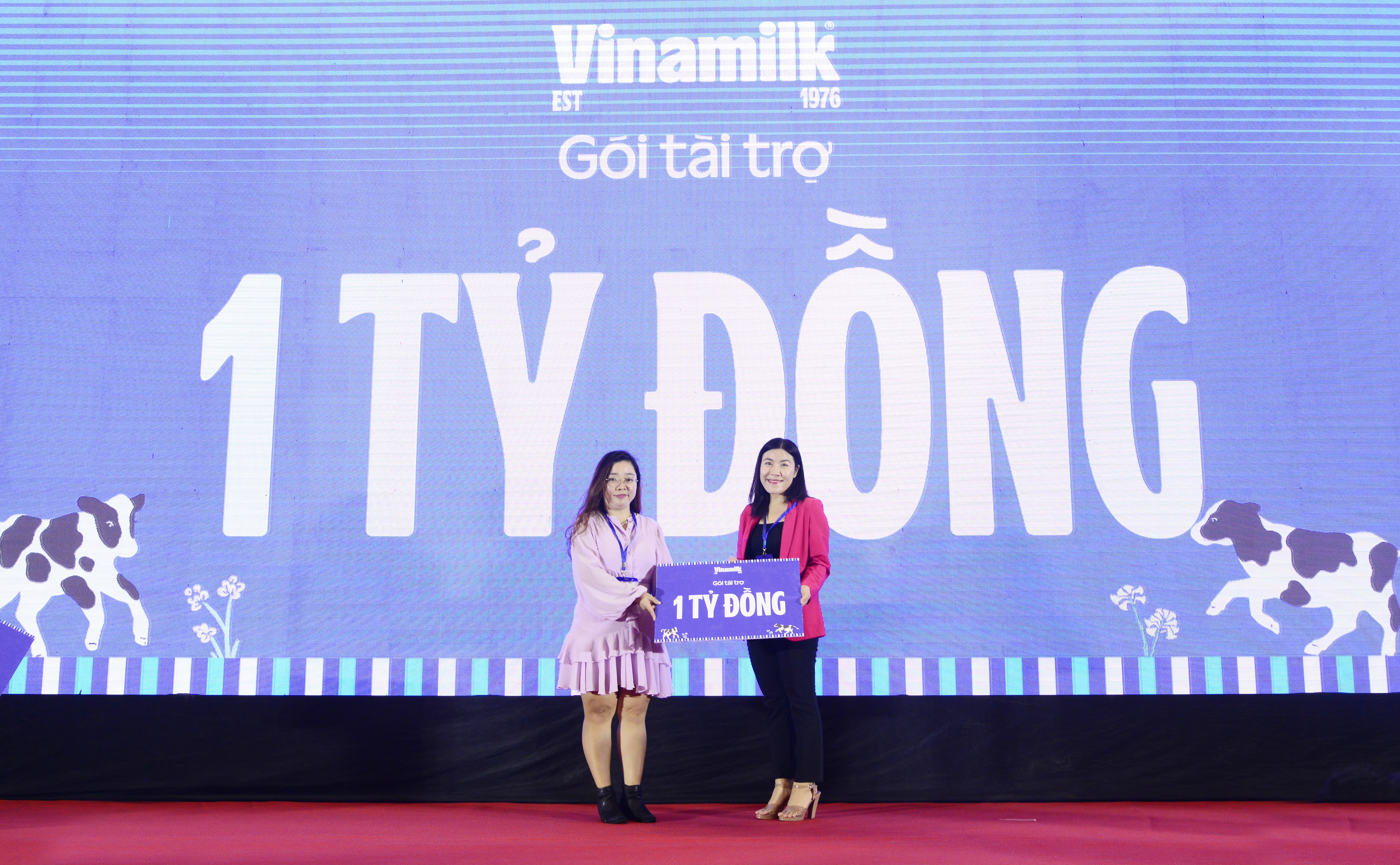 Đại diện Vinamilk trao bảng tài trợ 1 tỷ đồng cho ban tổ chức