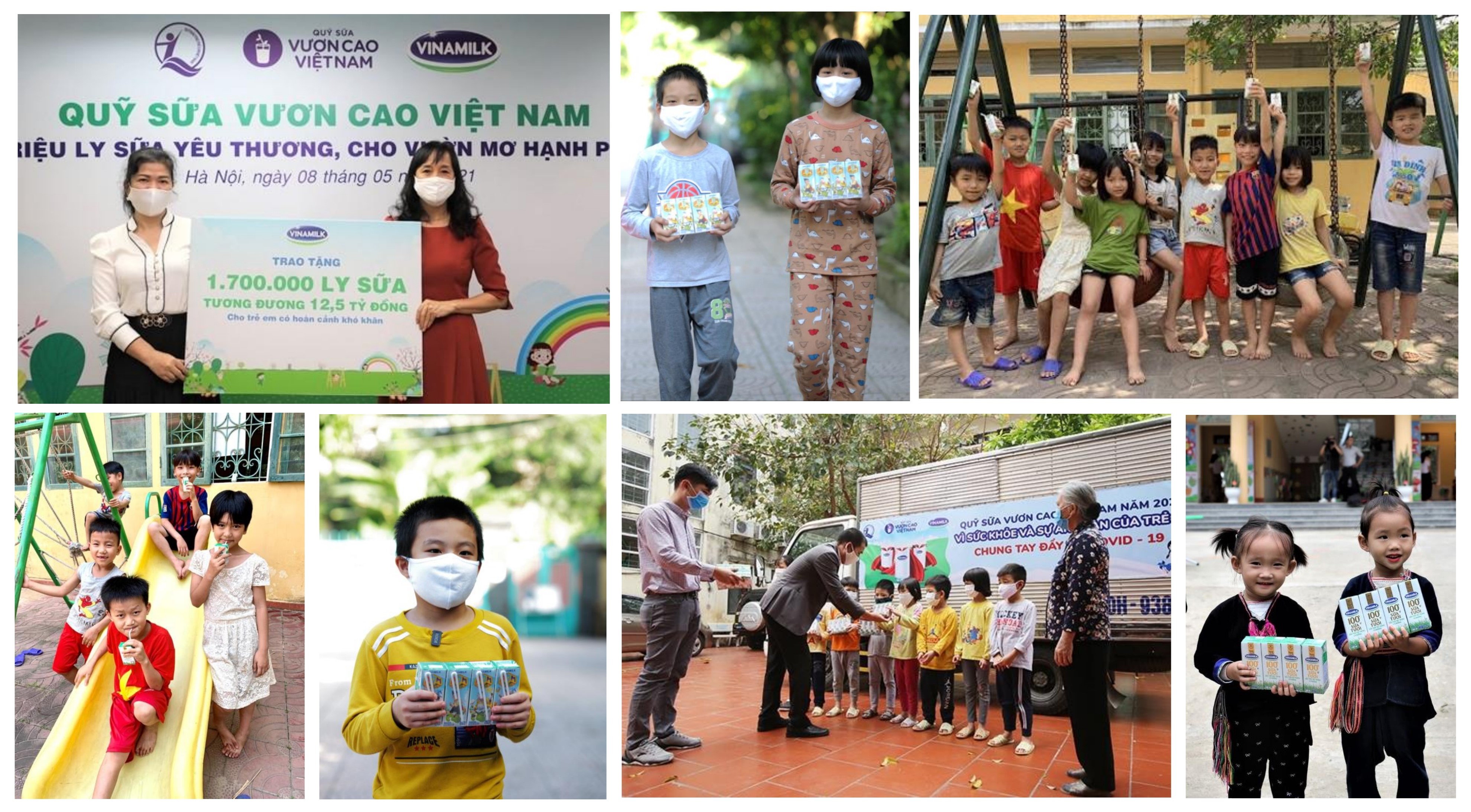 Vinamilk là doanh nghiệp tích cực triển khai các chương trình hướng đến trẻ em. Trong 2 năm đại dịch bùng phát, Vinamilk đã đẩy mạnh các hoạt động chăm sóc trẻ em như Quỹ sữa Vươn cao Việt Nam (với 3,4 triệu ly sữa tương đương 25 tỷ đồng trong năm 2020 và 2021); hỗ trợ hàng trăm ngàn hộp sữa cho trẻ em tại các nơi cách ly tập trung; hỗ trợ kinh phí cho nhiều trường hợp trẻ em phẫu thuật tim, mắt có hoàn cảnh khó khăn… Với nhiều hoạt động hướng đến cộng đồng, Vinamilk đã đóng góp gần 100 tỷ đồng gồm tiền mặt, sản phẩm dinh dưỡng, trang thiết bị y tế và nhiều hỗ trợ khác để chung tay chống dịch, vì một Việt Nam khỏe mạnh.