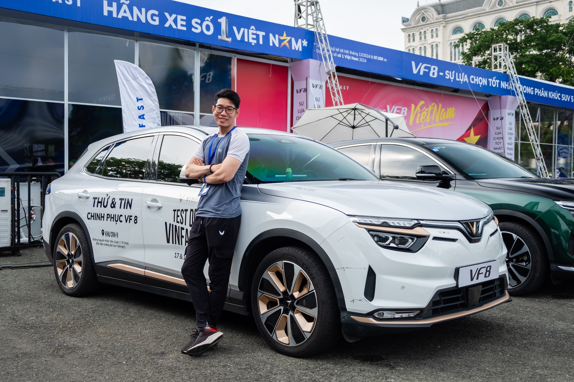 “Qua chuỗi bài test, tôi thấy VF 8 là mẫu xe rất ổn, nhưng điều khiến tôi bị thuyết phục hơn là chính sách hậu mãi, chính sách bán hàng và hạ tầng trạm sạc của VinFast. Tôi cũng từng cân nhắc tới một mẫu xe điện khác, nhưng mẫu xe điện của VinFast nổi trội hơn”, anh Nguyễn Kim Hưng, sống tại TP.HCM, một vị khách đang có ý định mua xe điện nói.