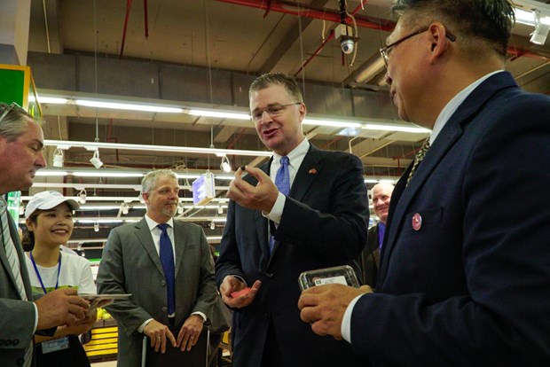 Ngày 11/7, trong khuôn khổ hoạt động hỗ trợ giao thương trực tiếp của siêu thị VinMart và Bộ Nông nghiệp Hoa Kỳ, đoàn công tác của Đại sứ quán Hoa Kỳ do Đại sứ Daniel J. Kritenbrink cùng Hiệp hội Blueberry Hoa Kỳ đã tới thăm siêu thị VinMart Times City tại Hà Nội.