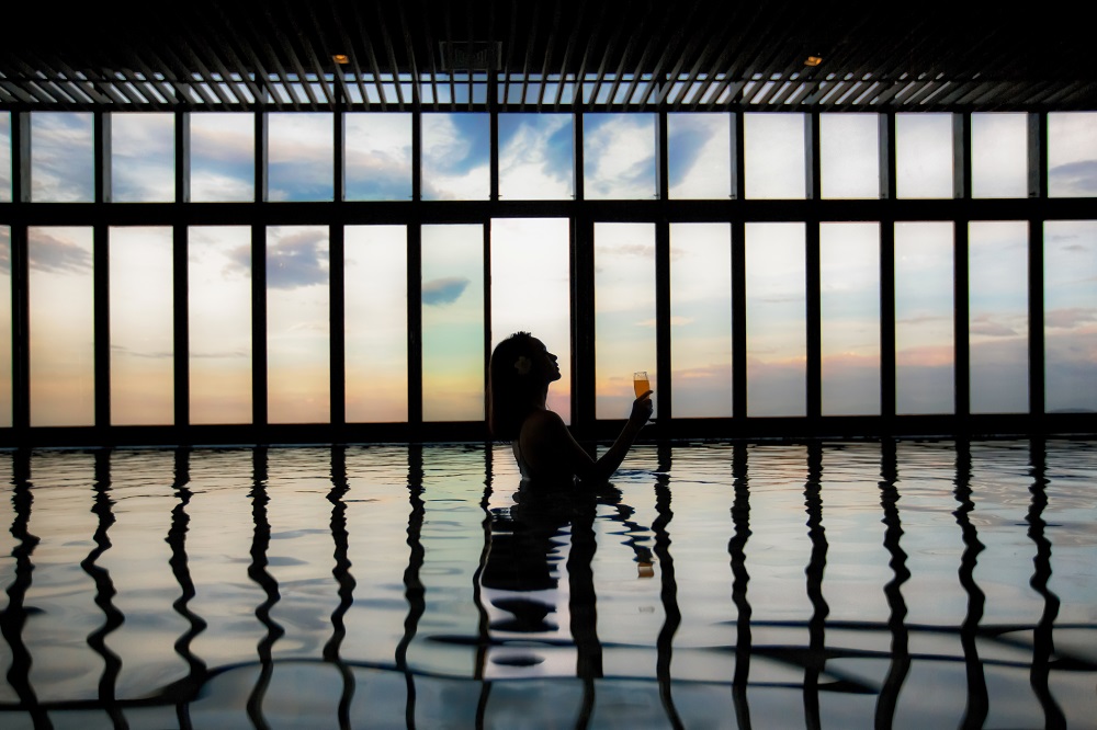 Không gian khoáng đạt của bể bơi 4 mùa nơi du khách thả hồn thư giãn giữa làn nước trong xanh và thưởng thức hương vị nồng nàn của những ly cocktail đặc biệt