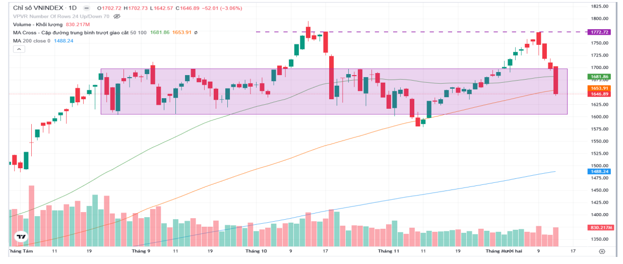 Về kỹ thuật, VN-Index được kỳ vọng có thể hồi phục trở lại vùng MA20 quanh 1.690 điểm trong các phiên tới. Vùng hỗ trợ quan trọng nằm tại khu vực 1.600–1.620 điểm, trong khi nhịp phục hồi dự kiến mang tính kỹ thuật nhiều hơn là khởi đầu xu hướng tăng mới.