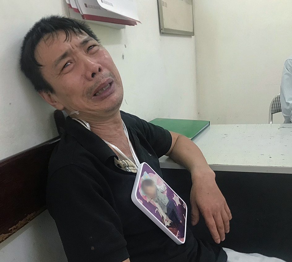 Tay ôm chặt di ảnh cháu được chụp lúc 1 tháng tuổi, ông Nguyễn Văn C. (ông nội bé Nam A.) ngồi bên ngoài phòng mổ pháp y liên tục gào khóc thảm thiết, đau đớn: "Nam A. ơi về với ông đi con, về chơi với ông đi… Mới đó mà sao cháu lại bỏ ông đi thế này, đau đớn quá…".