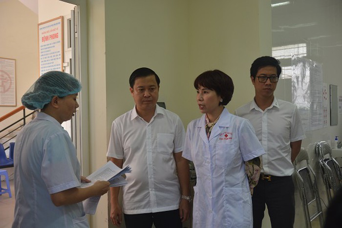 Phó Giám đốc Sở Y tế Hà Nôi - Trần Thị Nhị Hà trao đổi với lãnh đạo Trung tâm Y tế quận Thanh Xuân và Trạm Y tế phường Hạ Đình. Ảnh ANTĐ