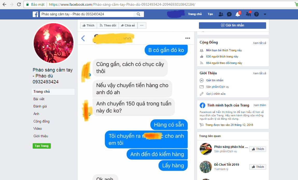 Tiếp tục thử tìm hiểu trên facebook – mạng xã hội có thể là đông người dùng nhất ở Việt Nam. Kết quả không mấy khác, hàng loạt các bài viết, video, … cho đến tài khoản, trang bán hàng quảng cáo những mặt hàng “dân chơi” này. Theo thông tin những chủ tài khoản bán hàng này thì họ có đầy đủ các loại từ pháo sáng, pháo dù tín hiệu, pháo thăng thiên, pháo cầm tay,… Đây đều là những công cụ đặc dụng được dùng trong lực lượng vũ trang, tín hiệu hàng hải. Đáng ngại hơn, các loại này đều có giá chỉ từ 100 nghìn đồng, mua nhiều khách hàng sẽ được giảm giá, khuyên mại theo nhiều cách khách nhau.