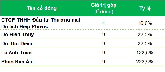 Cơ cấu cổ đông Công ty TNHH Đầu tư Kinh doanh BĐS Thịnh Phát |