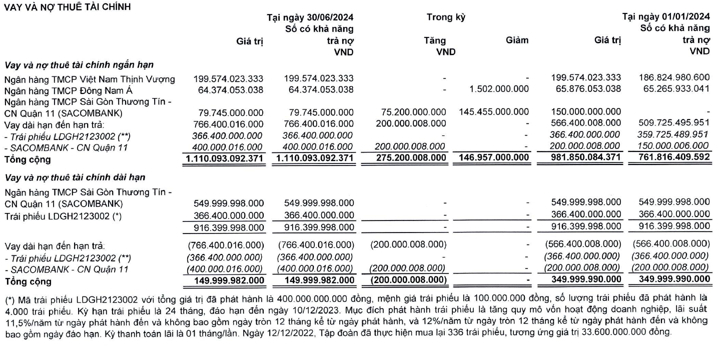 Chủ nợ lớn nhất của LDG là Ngân hàng TMCP Sài Gòn Thương Tín (Sacombank) - CN Quận 11 với tổng số tiền nợ gần 1.030 tỷ đồng, chiếm 82% tổng nợ. Trong đó, LDG có 400 tỷ đồng tại Sacombank là khoản vay dài hạn đến hạn trả, có 79,7 tỷ đồng vay ngắn hạn và gần 550 tỷ đồng vay dài hạn.