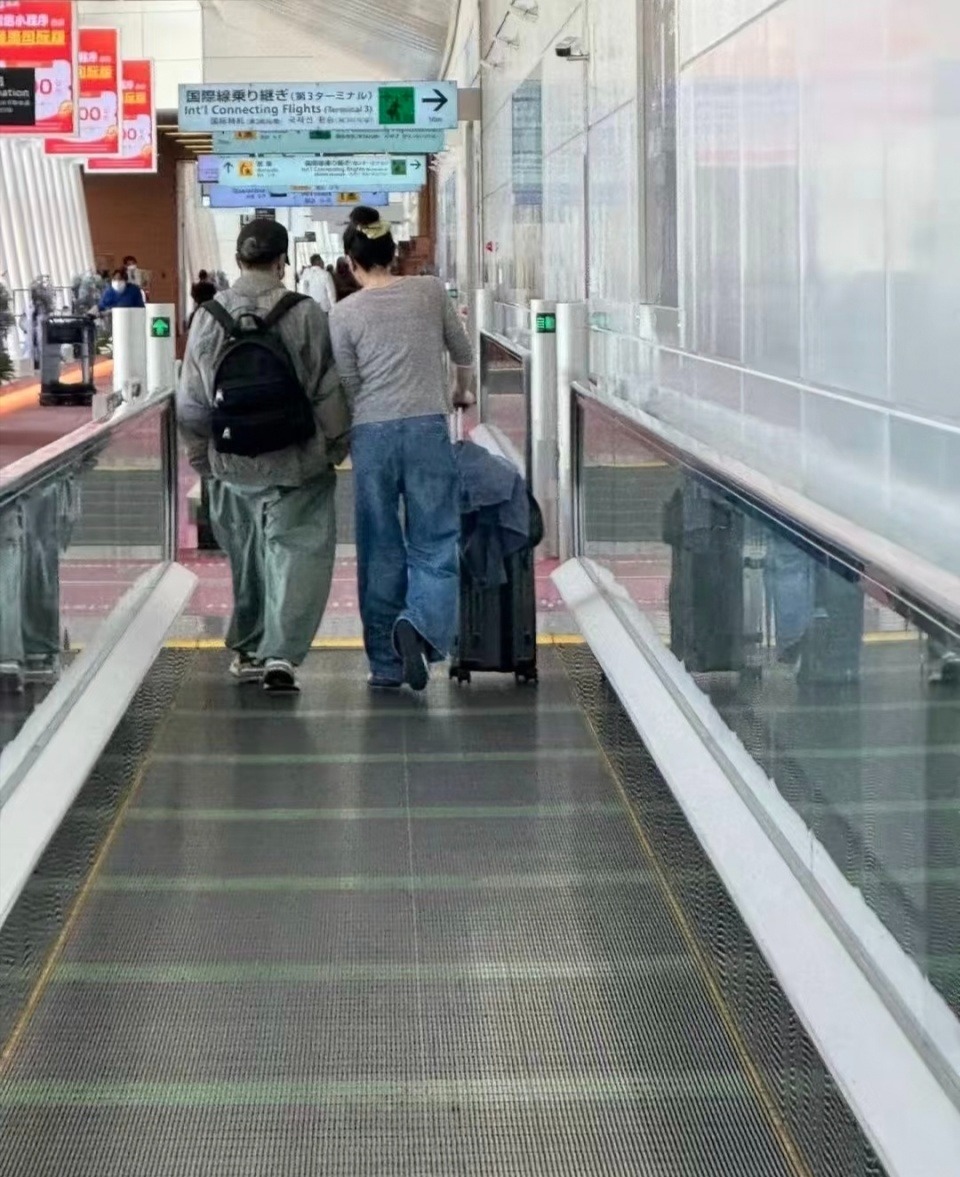 Một vài người hâm mộ đã bắt gặp cặp đôi ở sân bay và nhanh chóng ghi lại khoảnh khắc này. Tạ Đình Phong và Vương Phi đều đeo khẩu trang, diện trang phục giản dị kín đáo.