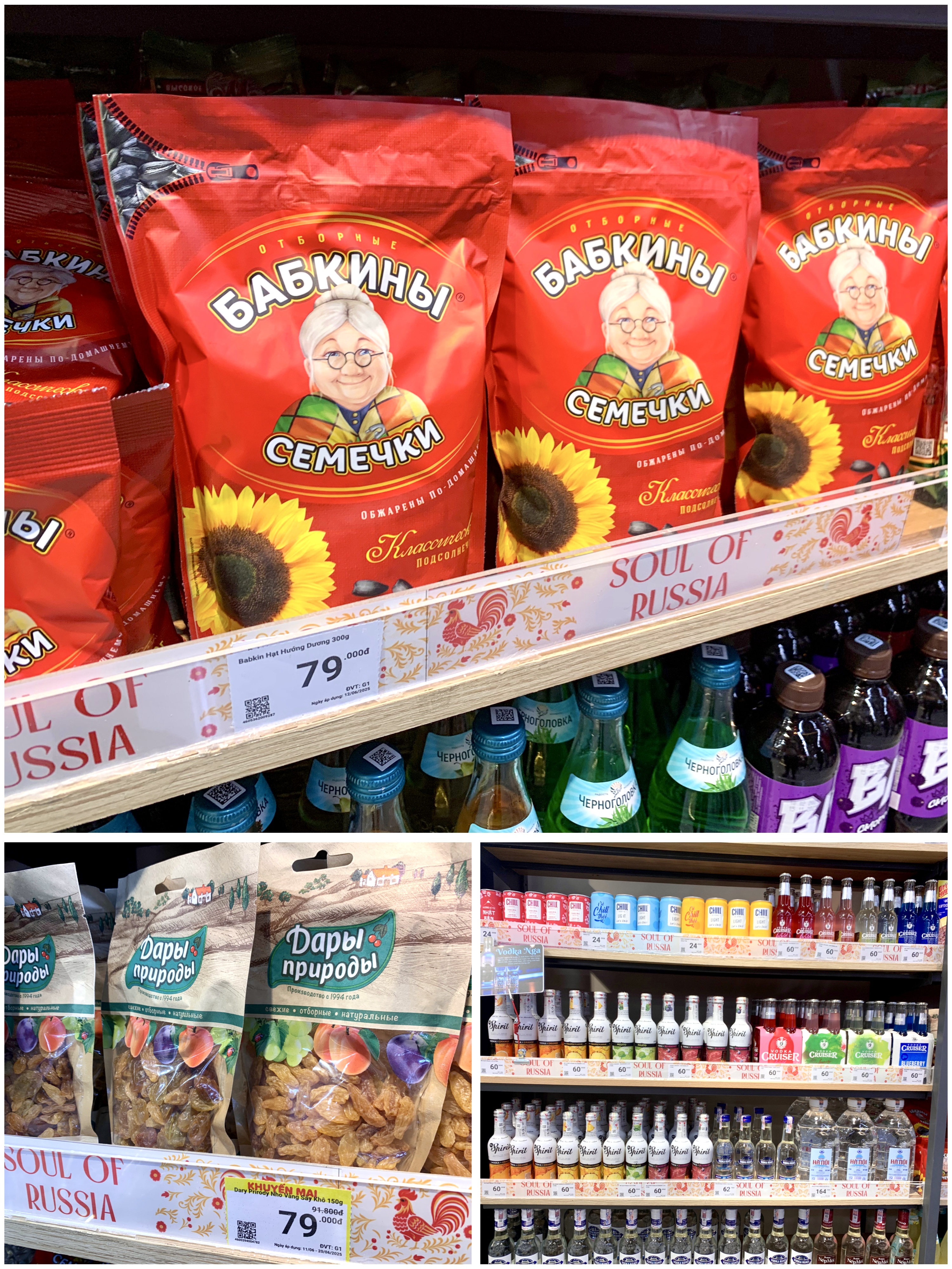 Với hơn 170 mã sản phẩm đặc trưng đến từ trên 30 thương hiệu uy tín của Nga, khu vực này mang đến loạt sản phẩm phong phú từ thực phẩm khô, bánh kẹo, đồ uống, sản phẩm đông lạnh cho đến mỹ phẩm và hàng gia dụng. Nổi bật có thể kể đến: