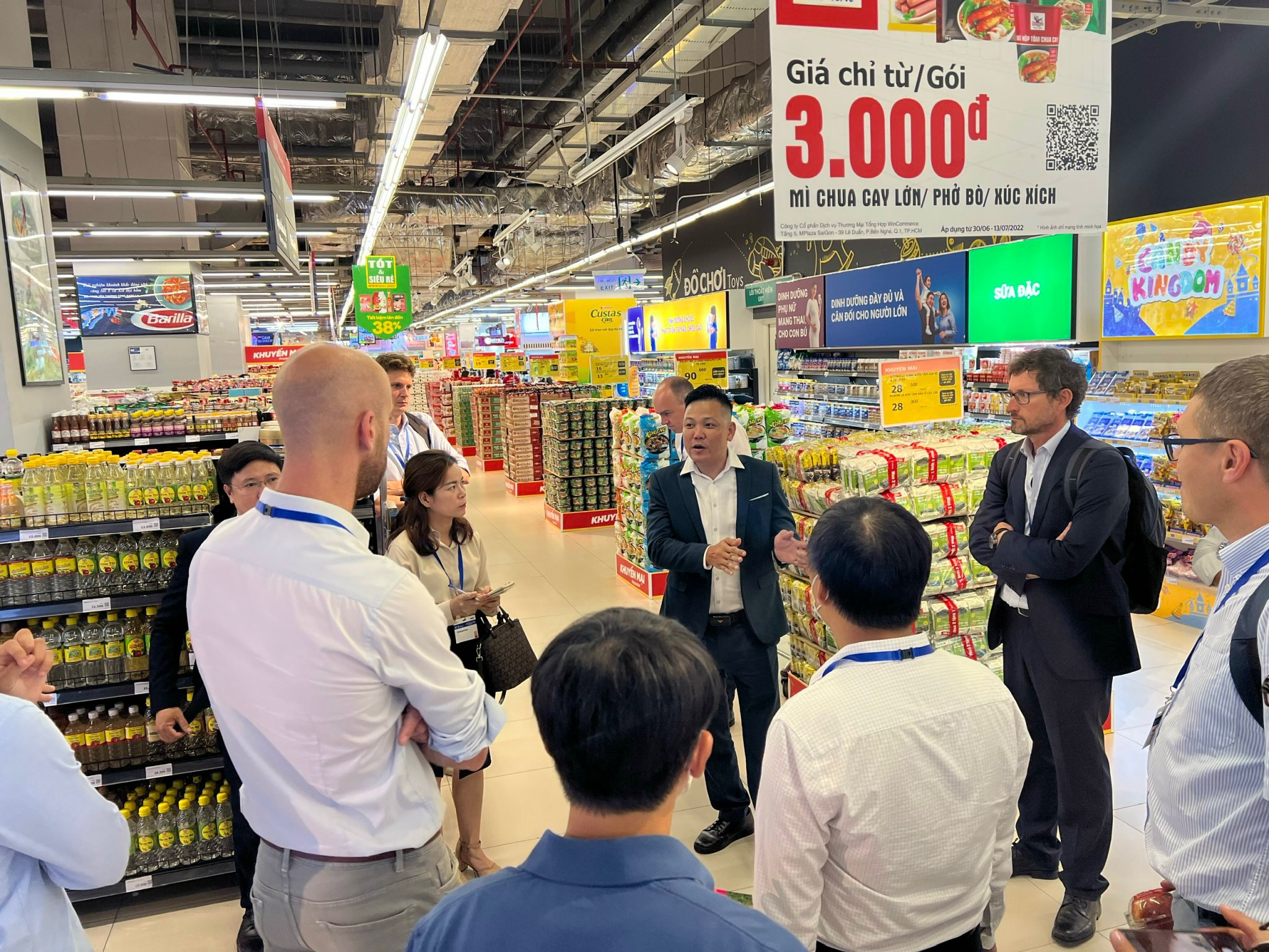 Ông Nguyễn Trọng Tuấn - Giám đốc Khối WinMart trao đổi với đoàn doanh nghiệp EU về tầm nhìn phát triển, kế hoạch hợp tác giữa hai bên