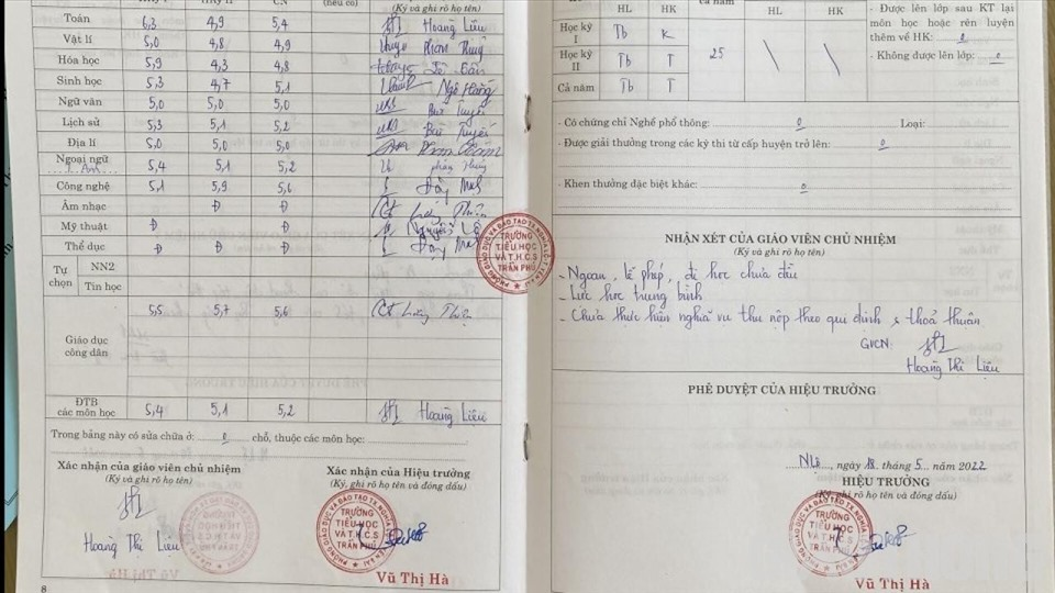 Học bạ của em D. vẫn được lên điểm bình thường.