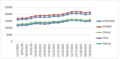 Biến động giá bán lẻ xăng dầu trong nước tháng 01/2021-9/2021