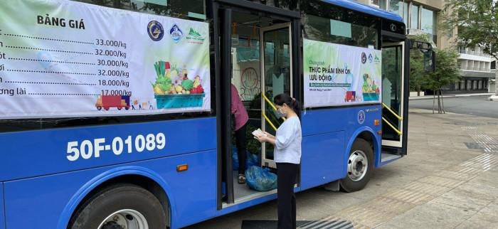 Để hỗ trợ người dân mua rau củ bình ổn giá trong thời gian thực hiện giãn cách xã hội theo Chỉ thị 16, Công ty TNHH Du lịch xây dựng Bảo Yến đã bố trí 2 xe buýt di động cung cấp rau củ cho người dân trên một số địa bàn TP.