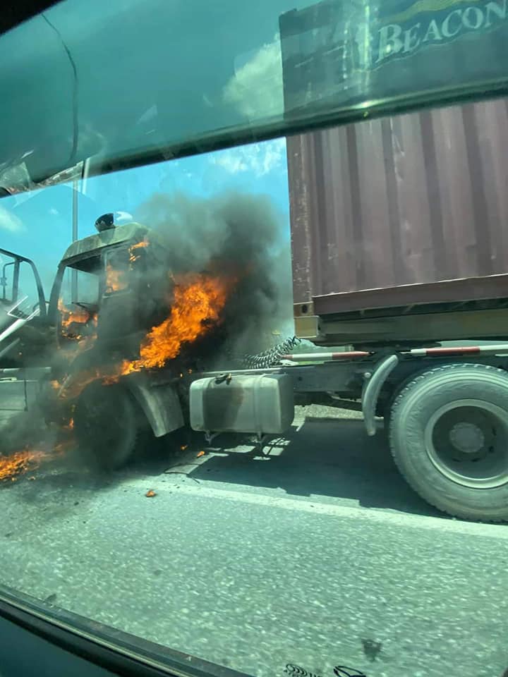 Chỉ sau một thời gian ngắn, ngọn lửa đã bùng lên và thiêu rụi hoàn toàn đầu kéo của xe. Rất may trong xe không có hàng hóa và chỉ cháy bộ phận đầu của xe.