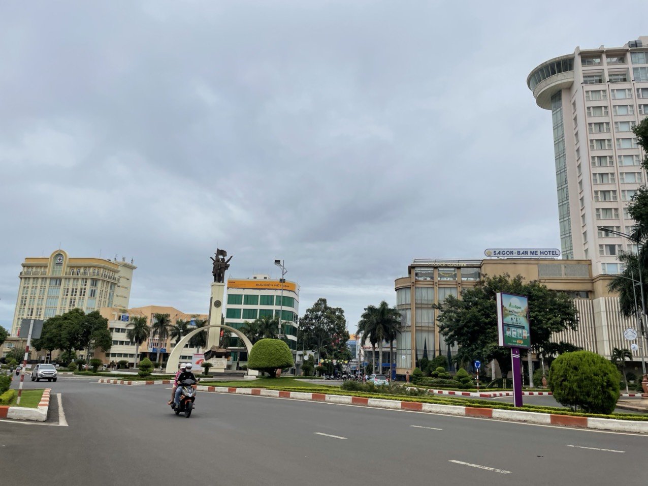 Ngã 6 TP.Buôn Ma Thuột thường ngày rất đông đúc xe cộ qua lại nhưng nay vắng tanh.